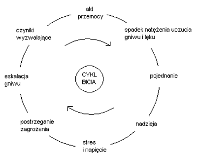 Stosowanie przemocy wobec partnera daje sprawcy efekty nagradzaj�ce, kt�re pozwalaj� na szybkie uzyskanie oczekiwanych rezultat�w. Bardzo cz�sto przemoc wobec najbli�szych ma charakter kompensacji r�nego rodzaju brak�w. Kiedy ofiara, bezpo�rednio po akcie przemocy nie okazuje swojego sprzeciwu, sprawca traktuje takie zachowanie jako przyzwolenie na dalsz� przemoc. Je�eli taka sytuacja trwa przez d�u�szy okres czasu, pojawia si� okre�lona dynamika i cykle przemocy. Badania przeprowadzane na bitych kobietach wykaza�y, �e przechodz� one przez okre�lone fazy cyklu. Cykl ten sk�ada si� z trzech faz: budowania napi�cia, przemocy i pojednania. Pierwszym ogniwem jest pojawienie si� sytuacji stresowej, drugim spos�b spostrzegania zjawiska, kt�re mo�e by� b��dnie odbierane, trzecim intensywno�� z�o�ci i zaburze� emocjonalnych, czwartym brak ogranicze� w ekspresji przemocy, co w rezultacie prowadzi do powstania aktu przemocy.